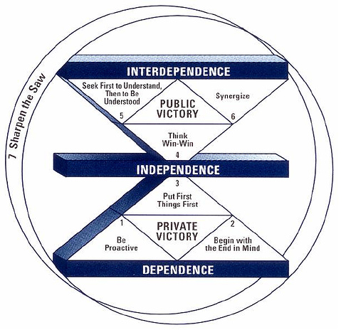 Setelah memahami habit ke-3, kita diharapkan dapat mencapai kemenangan pribadi. Covey menjelaskan seseorang yang mencapai kemenangan pribadi telah berlaku independen atau tidak bergantung pada siapapun atau apapun. Orang ini mampu menggerakkan dirinya ke arah manapun. Orang ini telah meninggalkan pemikiran defisit dan mampu menyerap segalanya secara apresiatif. Saatnya orang ini mencapai kemenangan publik atau kemenangan bersama. Pada Appreciative Inquiry, kemenangan bersama dimulai sejak awal penemuan inti positif.
